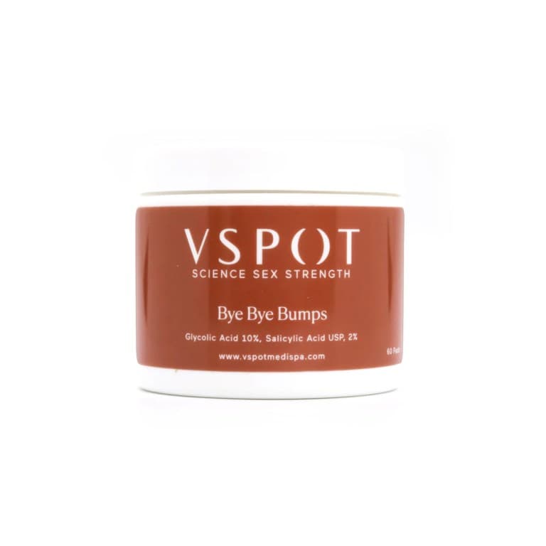 Next, it’s time to get rid of those dead skin cells and clear out your pores. While still in the shower, use a gentle physical or chemical exfoliant (seriously—gentle!!) to slough your skin. Escoboza likes Bushbalm‘s scrub, which pairs sugar crystals with hydrating oils. However, “If your skin is rough or thickened from past damage, skip the scrubs,” she says. “I recommend using a daily chemical exfoliator, like V SPOT’s Bye Bye Bumps, and avoiding physical exfoliants that can cause further damage to this skin type.” If you’re going to remove any body hair, now’s also the time to do it.