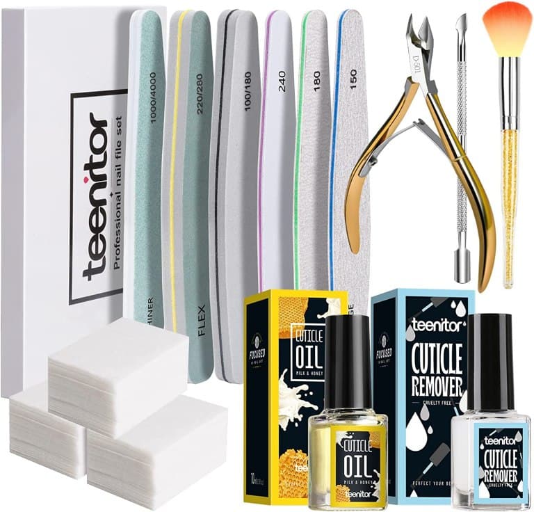 “If any gel is left over, you can repeat the steps above or use a fine, 220-400 grit file to gently remove the rest of the gel,” says Kandalec. “Buff gently with the padded buffer and cuticle oil to create a smooth surface.” This set from Teenitor ($14) has everything you need.