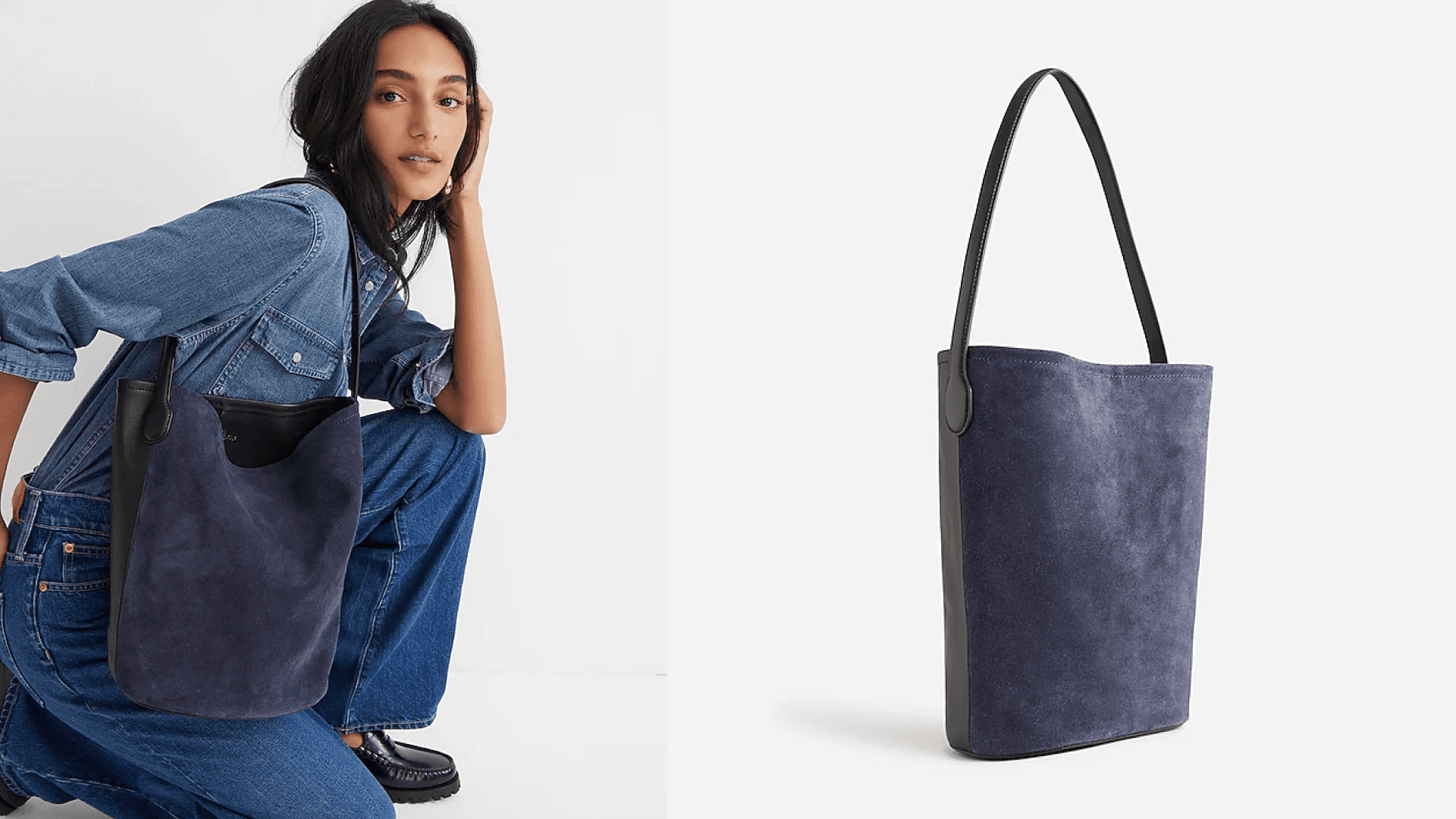 If you gravitate towards the shape of a classic canvas tote bag, but want something that feels fancier, go for a bucket bag. It has a simple tie closure and is even large enough to fit a laptop (shocking, we know). ($198+, J.Crew)