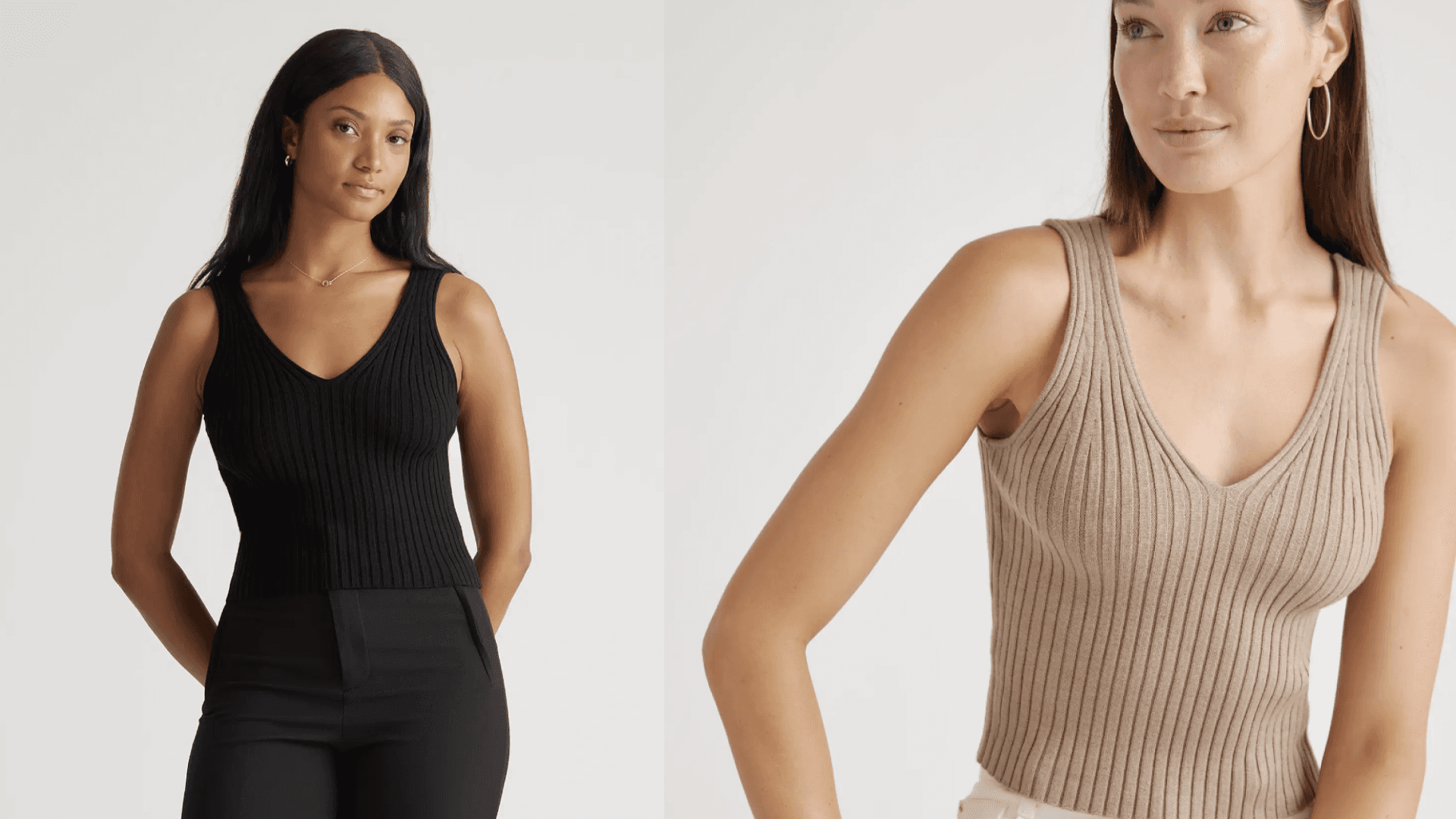 If you’re sick of wearing button-downs to the office, you need this. It feels more dressed up in comparison to a classic tank top, and the ribbed material is comfortable and stretchy. The V-neck also dresses it up more for work and we love how the material is thick enough to wear on its own. You can also layer it underneath cardigans and blazers, if that’s more your look. ($29.90, Quince)