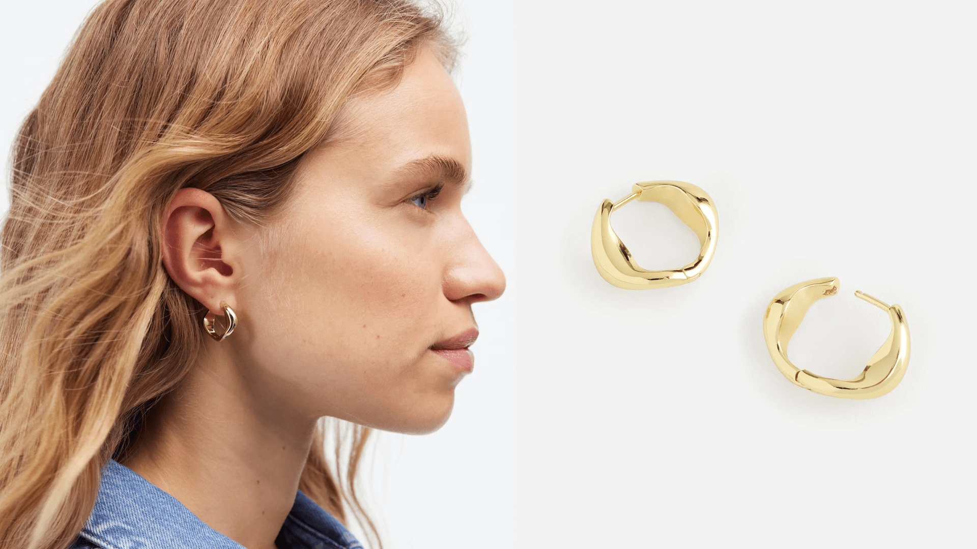Hoop loyalists, we’ve found a unique pair to add to your collection. These chunky hoops have a light-catching twisted detailing in the middle. Their sleek latch closure makes them easy to put on, and because they don’t have a back, you can sleep in them without any discomfort. They’re made of 100% gold-plated brass and are safe for those with sensitive skin. ($34, Madewell)