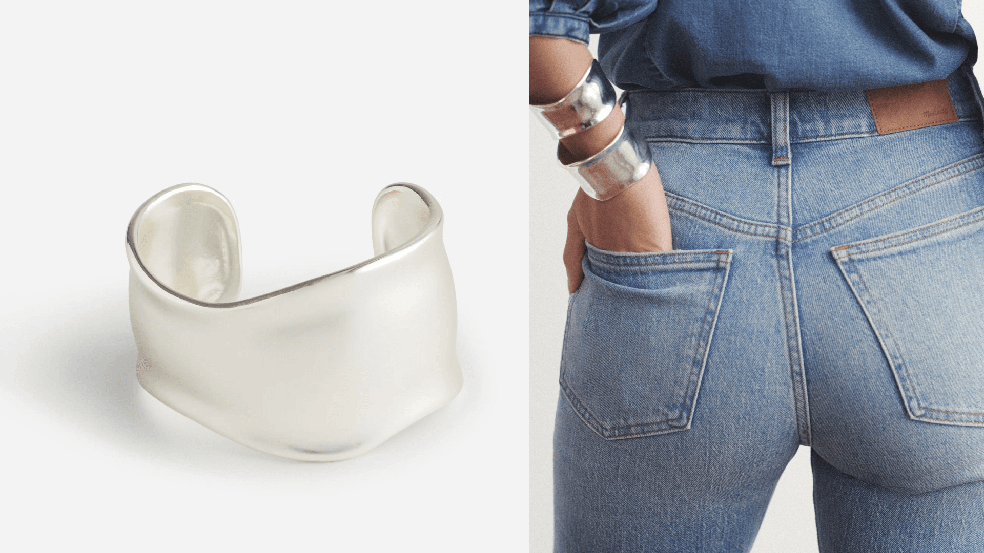 This dome cuff looks almost exactly like Elsa Peretti’s Bone Cuff at Tiffany’s but at a fraction of the cost. It’s made of recycled factory scrap metal and is safe for those with nickel allergies. ($58, Madewell)