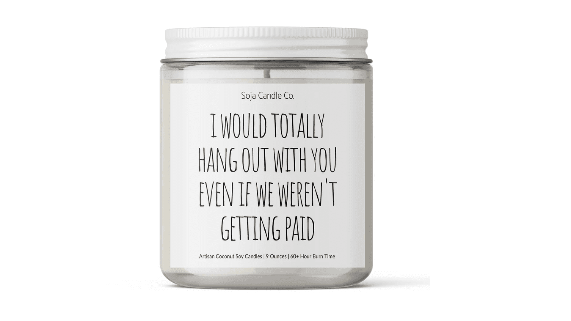 Sure, they’re your work wife, but they’re also your real-life friend. And when a co-worker crosses that threshold, we all know that’s pretty important. Let ’em know with a candle that simplifies it. ($14.99+, JNCandleCo via Etsy)