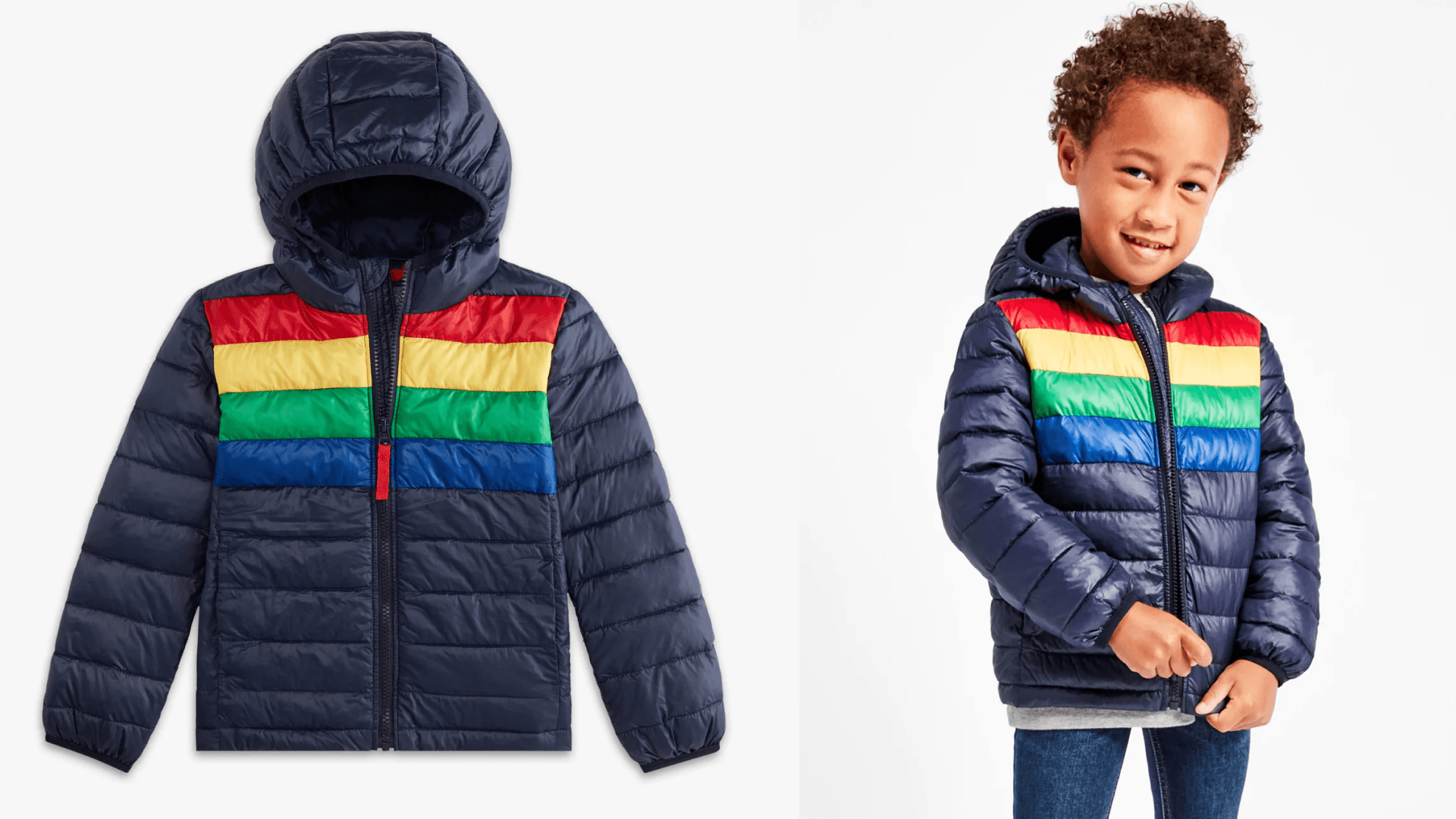 Cold wintery days deserve color too. This coat has the perfect amount of warmth for chillier days. It’s windproof, water-repellent, and has a full zip with a chin guard to retain heat. There’s even an “I belong to” label inside to ensure it won’t get lost in the hustle and bustle of recess. Smiles definitely included. ($44.50, Primary)