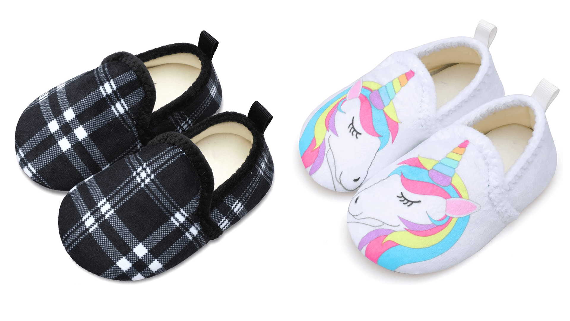 They’ll need to keep their feet warm at home too. This sherpa-lined pair has a non-slip outsole. They’re completely wrapped in soft velvet and they easily slide on with a stretchy collar. Pick from a basic plaid to ones covered in unicorns. Plus, they’re durable enough to wear out. ($13.99+, Amazon)