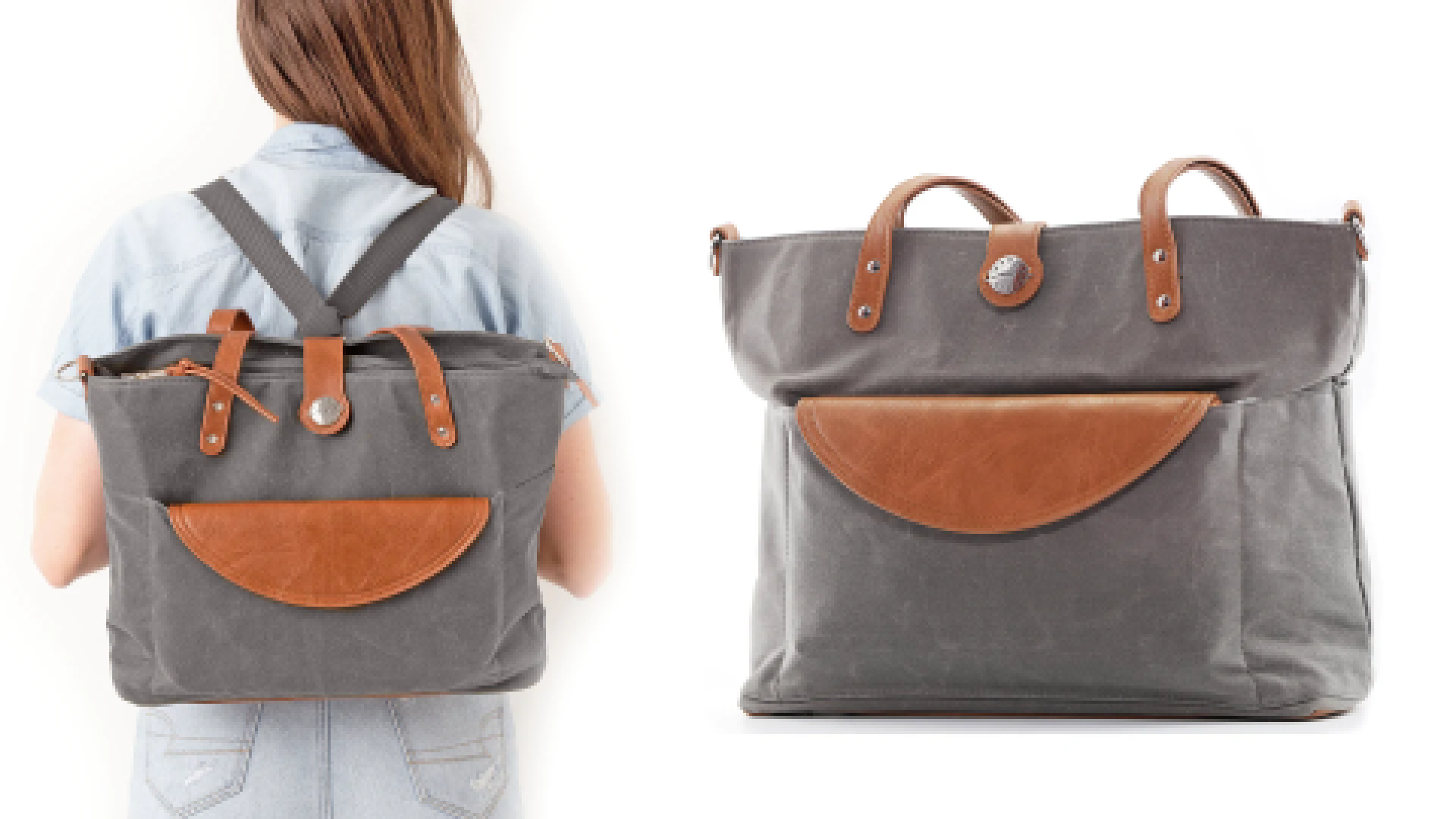 A super-practical bag made from waxed canvas and vegan leather…
