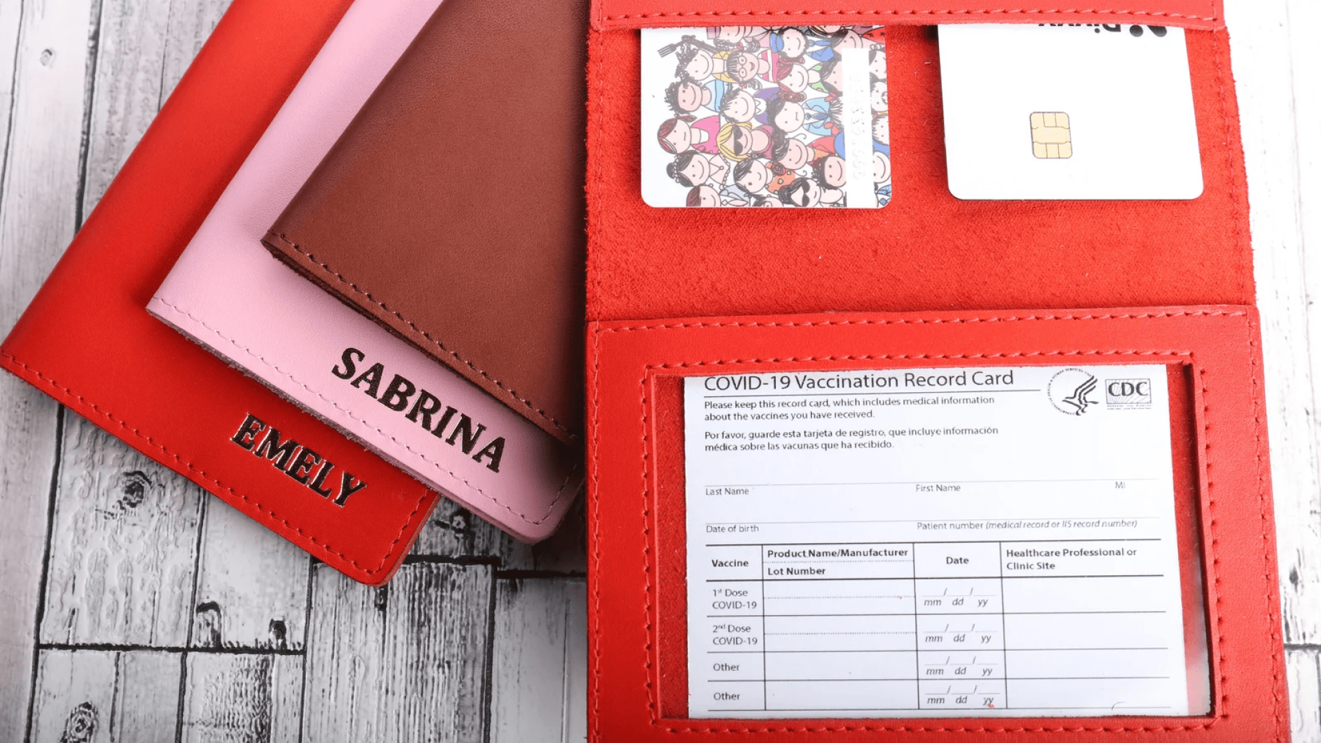 A passport holder that’s also a safe spot for their vaccination cards…