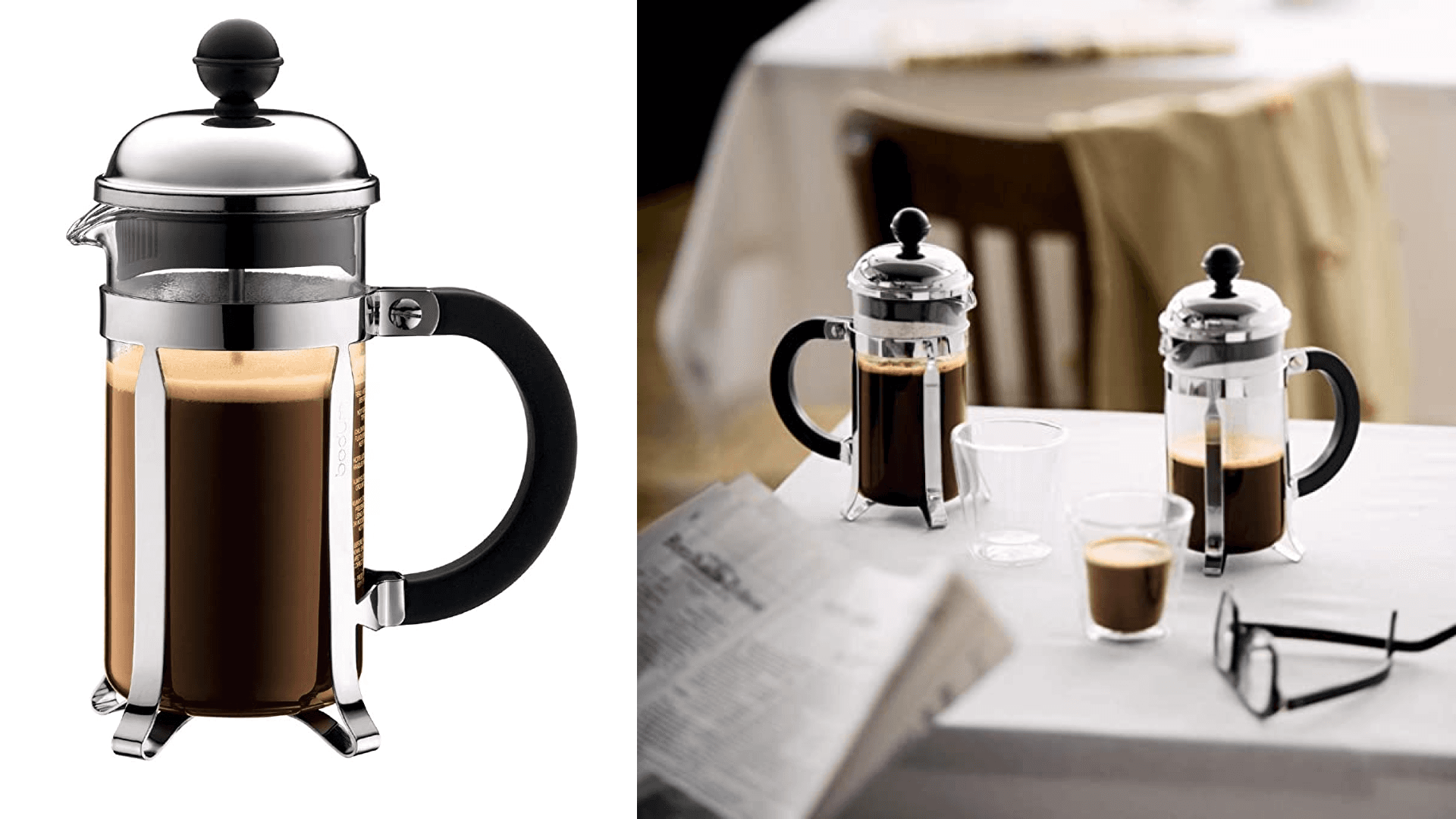 A classic manual French press coffee maker…