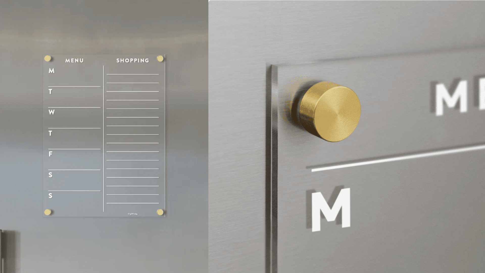 This simple, minimalist design gives a new adult meaning to ‘dry erase.’ You can choose between gold, black, and stainless steel hardware. Mount it to any magnetic surface of your choosing (like your fridge). Happy planning. ($60+, GirlFridayAcrylics via Etsy)