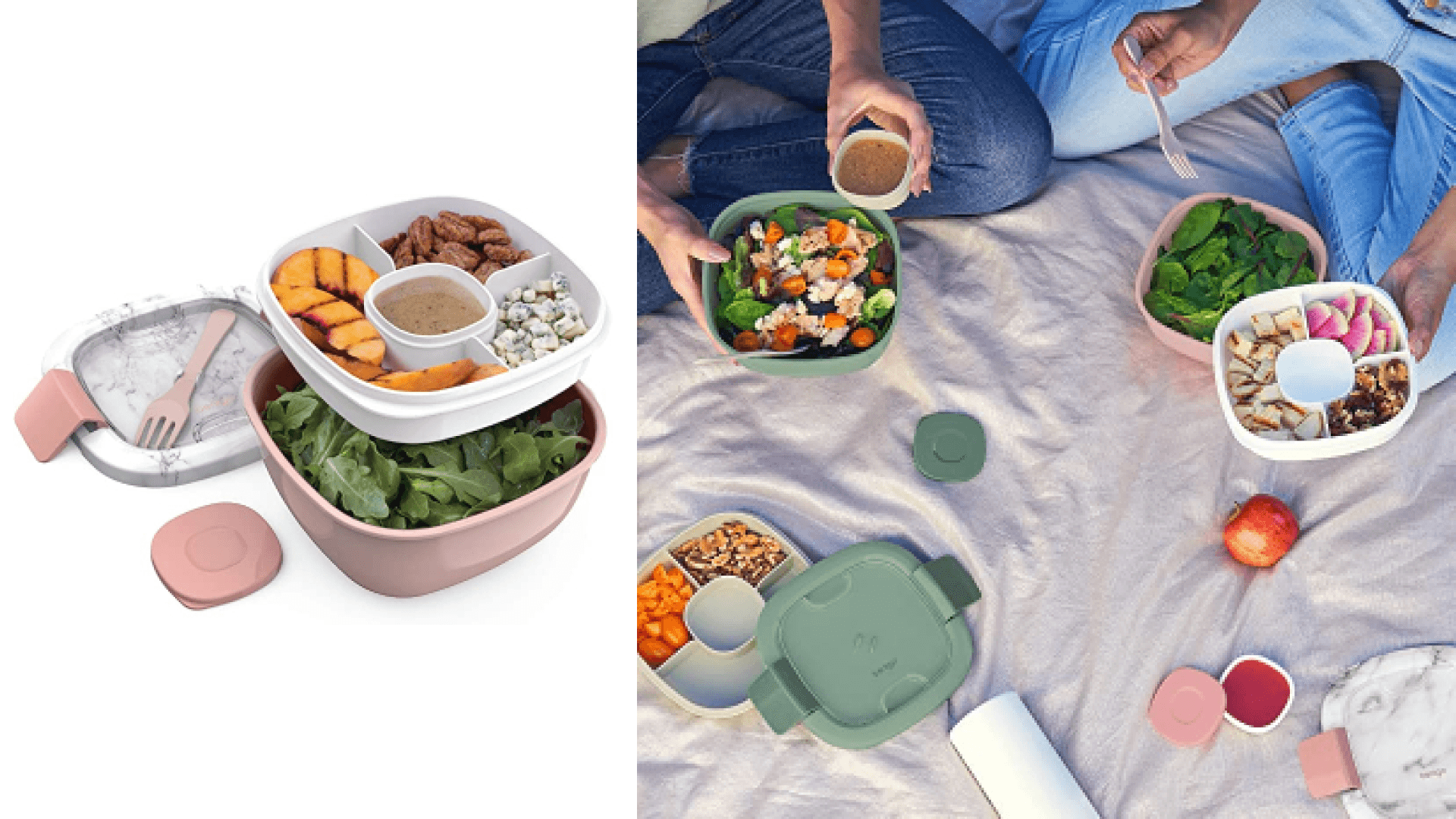 Soggy salads, no more. This handy bowl has four stackable compartments. One for your base, one for any toppings, one for condiments, and one for your utensil with a cover. The lid is airtight, so it’ll keep everything extra fresh. Bring it on the go or use it for easy meal prep at home. Obsessed. ($16.99, Amazon)