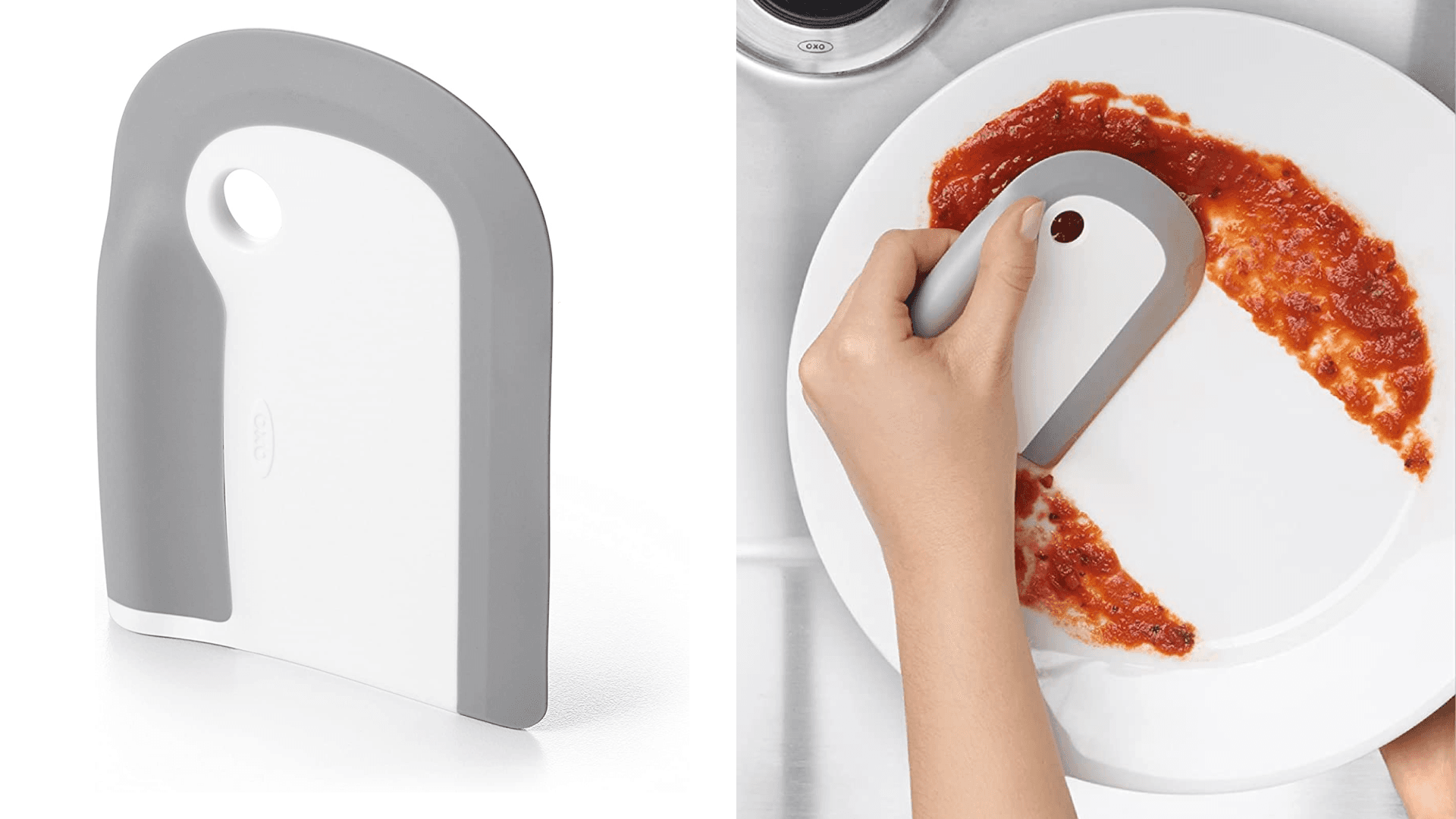 This multifunctional tool allows you to quickly remove leftovers from plates, collect crumbs off countertops, push food into garbage disposals, and even clear excess water in your kitchen or bathroom — instead of having to use your bare hands. It has a sturdy grip and a slightly flexible edge to really get into dish crevices. Plus, the curved edge makes it easy to clean pots and pans. Forget having to use endless paper towels to scrape off any extra debris in your pre-wash step. Psst…peep our full review of this product and more from OXO. ($9.97, Amazon)