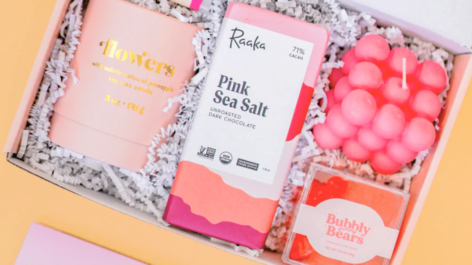 Pure bliss is on the way. All you have to do is pick your box design, select your goodies (think: candles, snacks, etc.,), choose a cute card, and write your message. Happy Box’s team will put it all together and even write her note by hand. (Prices vary, Happy Box)