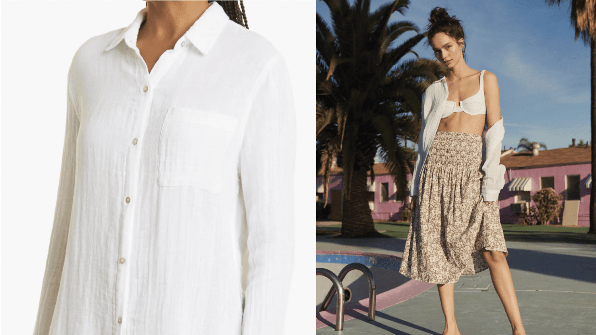 One of our editors has this shirt in white and she’s been wearing it over everything this summer. It's soft, lightweight, and won’t feel irritating against your skin. It’s 100% cotton gauze, so we suggest handwashing and air-drying this one. ($158+, Nordstrom)