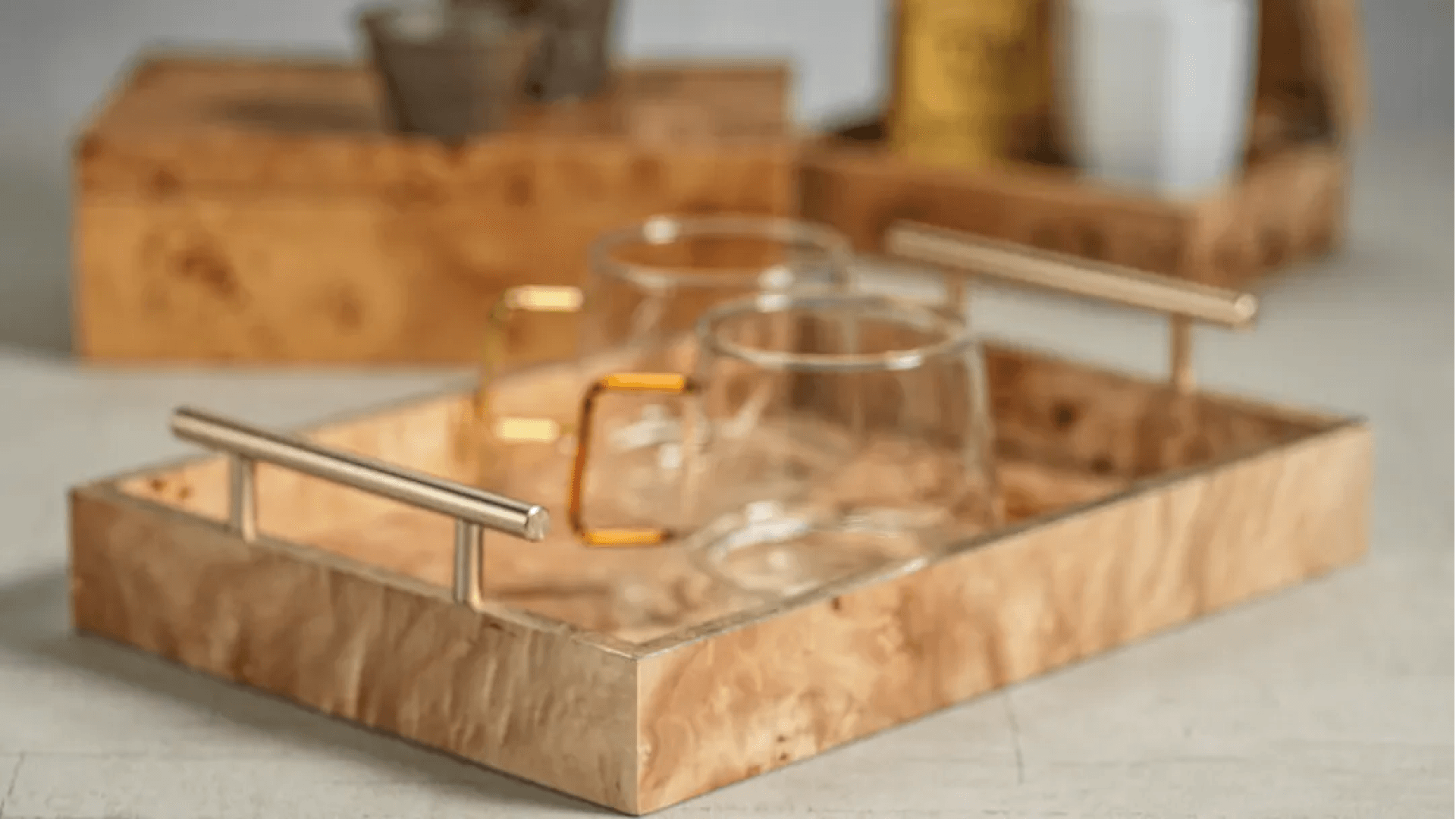 Our editor uses this to set her drinks on when she watches her favorite shows. It looks great sitting on her ottoman with its lovely honey-colored wood and gold handles. It would also work well on a bar cart or displaying items in the middle of an island. ($66, Wayfair)