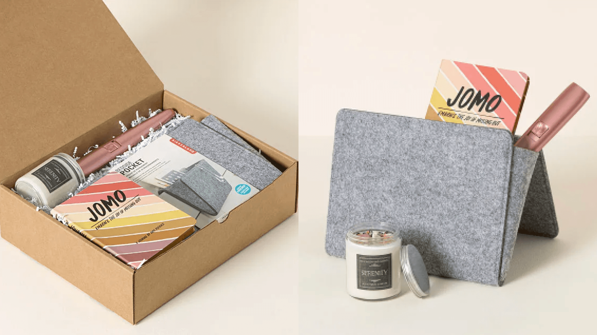 Pre-curated gifts for the win. In our limited-edition bundle with Uncommon Goods, she’ll get a bedside pouch that’ll hold all her essentials, a rose gold rechargeable lighter, a lavender candle, and a clever “Joy of Missing Out” journal. Homebodies, unite. ($75, Uncommon Goods)
