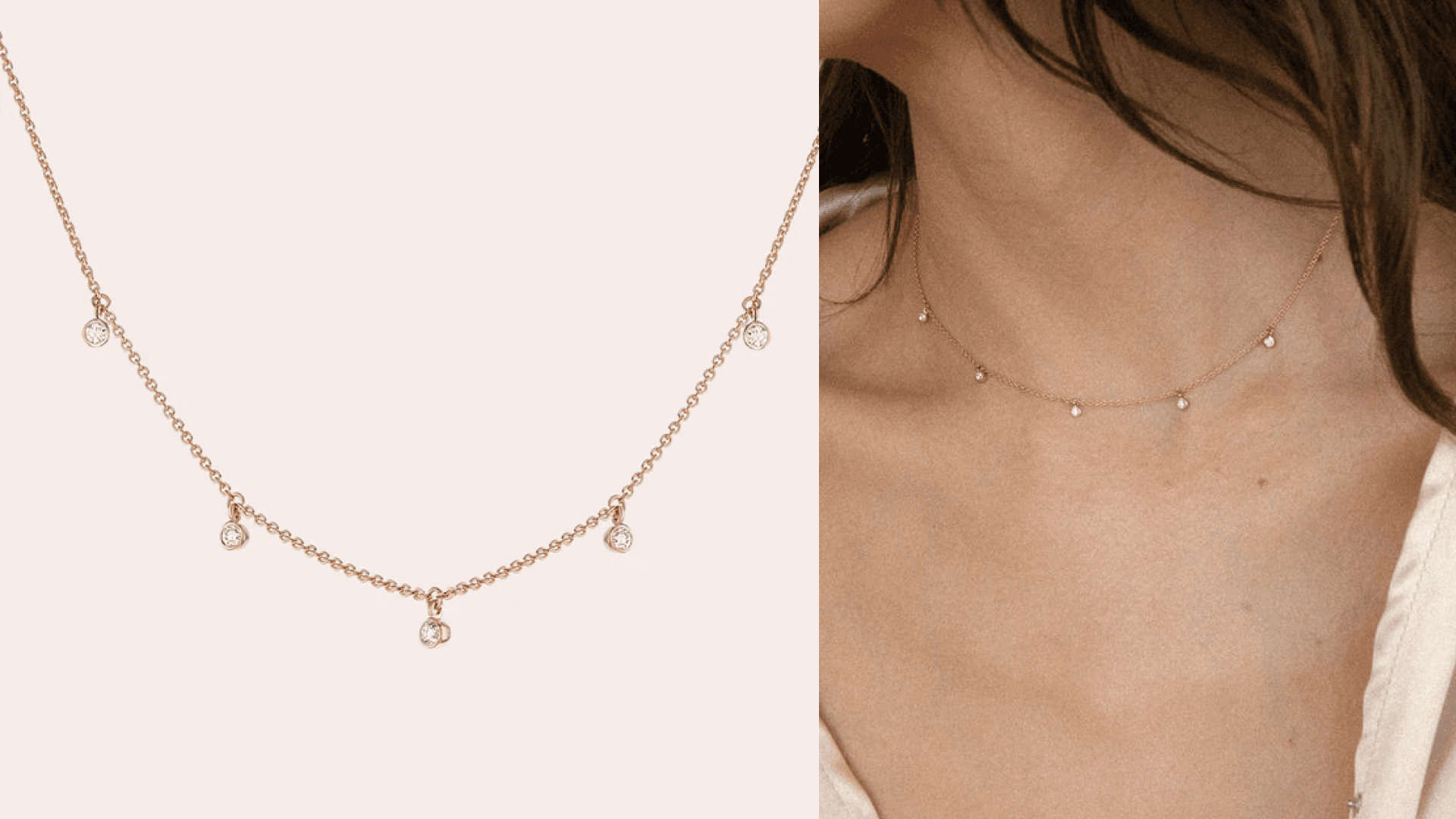 OK, showstopper. This 18-karat necklace has five dainty diamonds that are evenly spaced out along the neckline. You can pick from rose, yellow, or white gold, and it hits right at the collarbone, so they can easily layer it with some of their other favorites. Psst...use code SKIMM15 at checkout to get 15% off your order. ($790, Noémie)