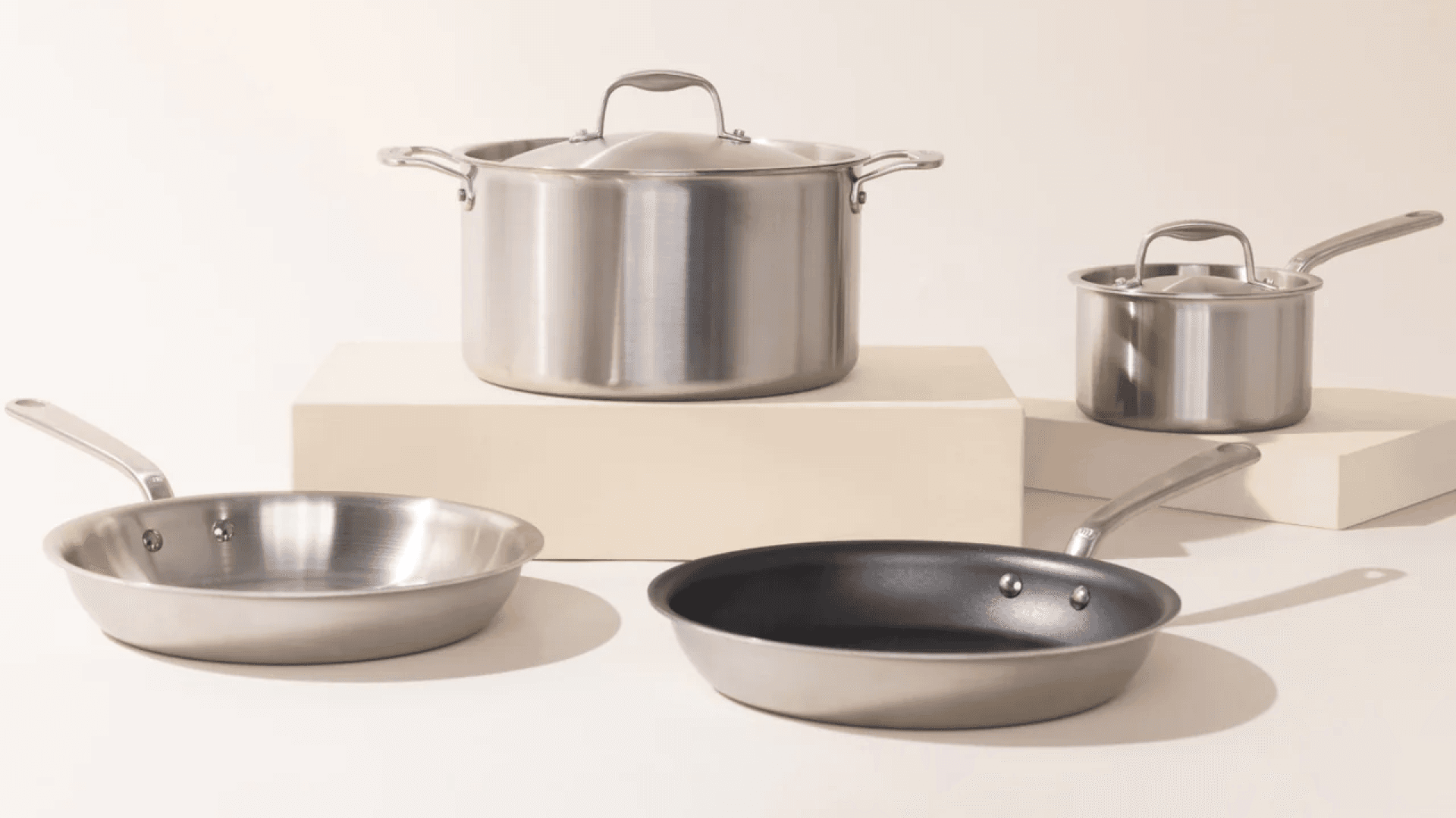 This set includes two frying pans (one nonstick and one stainless clad), a sauce pan, and a stock pot — aka all the kitchen basics. Everything is induction-compatible and oven-safe, and the handles are even designed to stay cool. Perfect for someone starting out in a new place…or just getting into cooking for the first time. ($529, Made In)