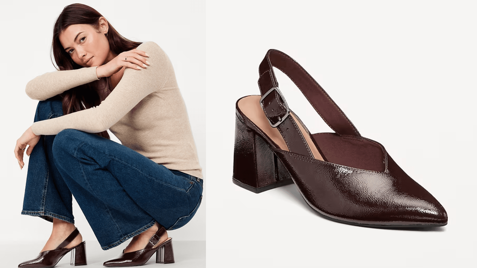 Don’t forget: Old Navy has shoes. This faux-leather pair is just begging to be worn with a cool pair of trousers and a basic tee. They have a slingback closure and its pointed shape adds a structured touch. Not to mention, the thick block heel makes them comfortable for all-day wear. ($44.99, Old Navy)