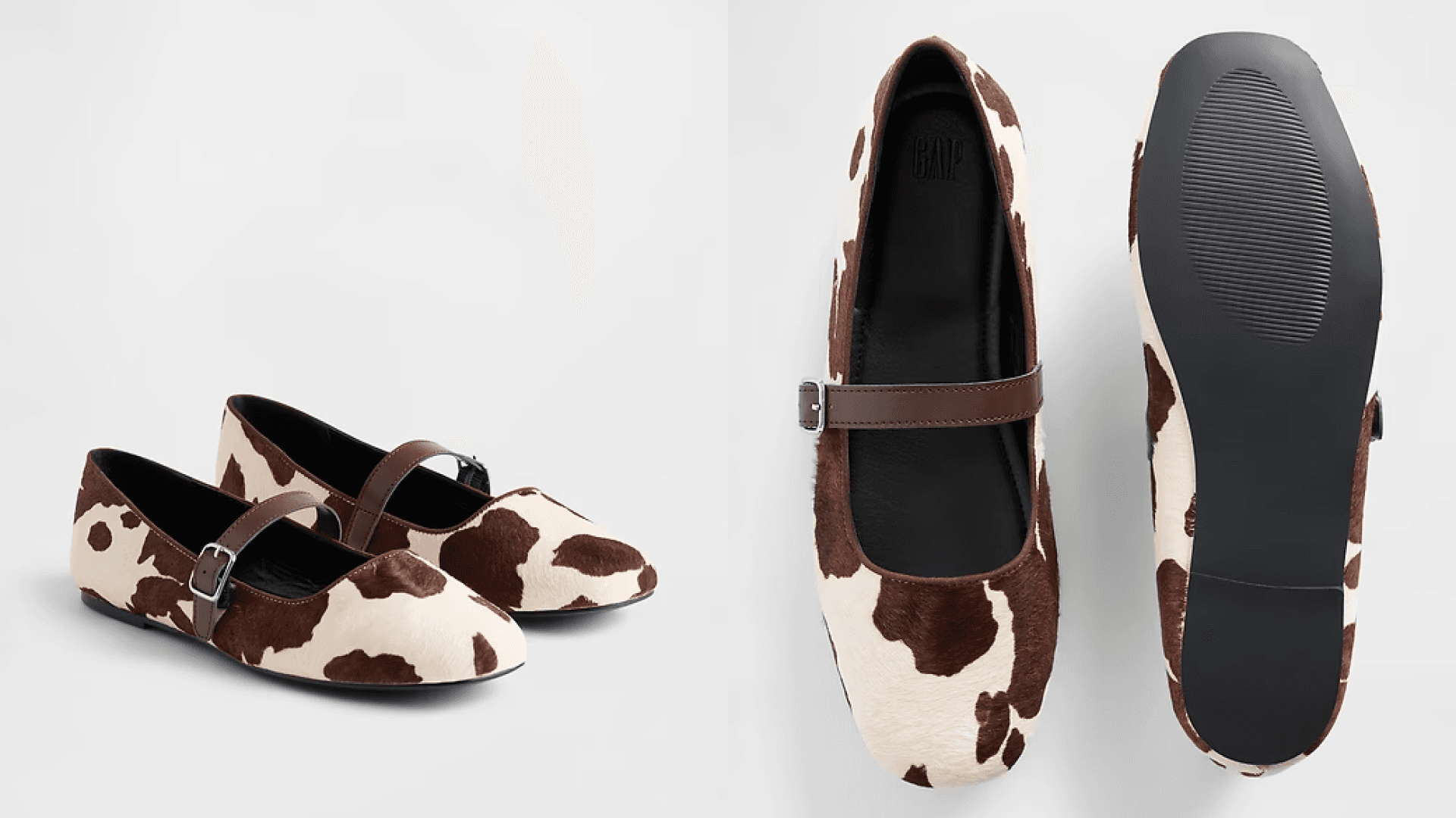 Cow print is about to be everywhere and we mean everywhere. You don’t need to spend a ton to try the trend, and in fact, we’d encourage you not to. These Mary Janes from Gap are under $100 and would pair well with cream pants. ($69.95, Gap)