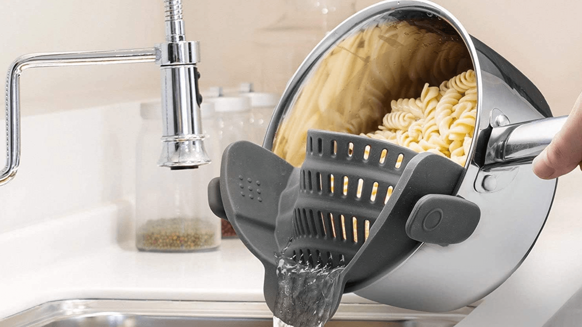 Using this dishwasher-safe silicone gadget to drain pasta or help rinse fruit and vegetables is one of our all-time favorite kitchen hacks. No need to store a separate colander, or clear space in the sink for it: just clip this onto a pot or bowl and you’re all set. ($14.99, Amazon)