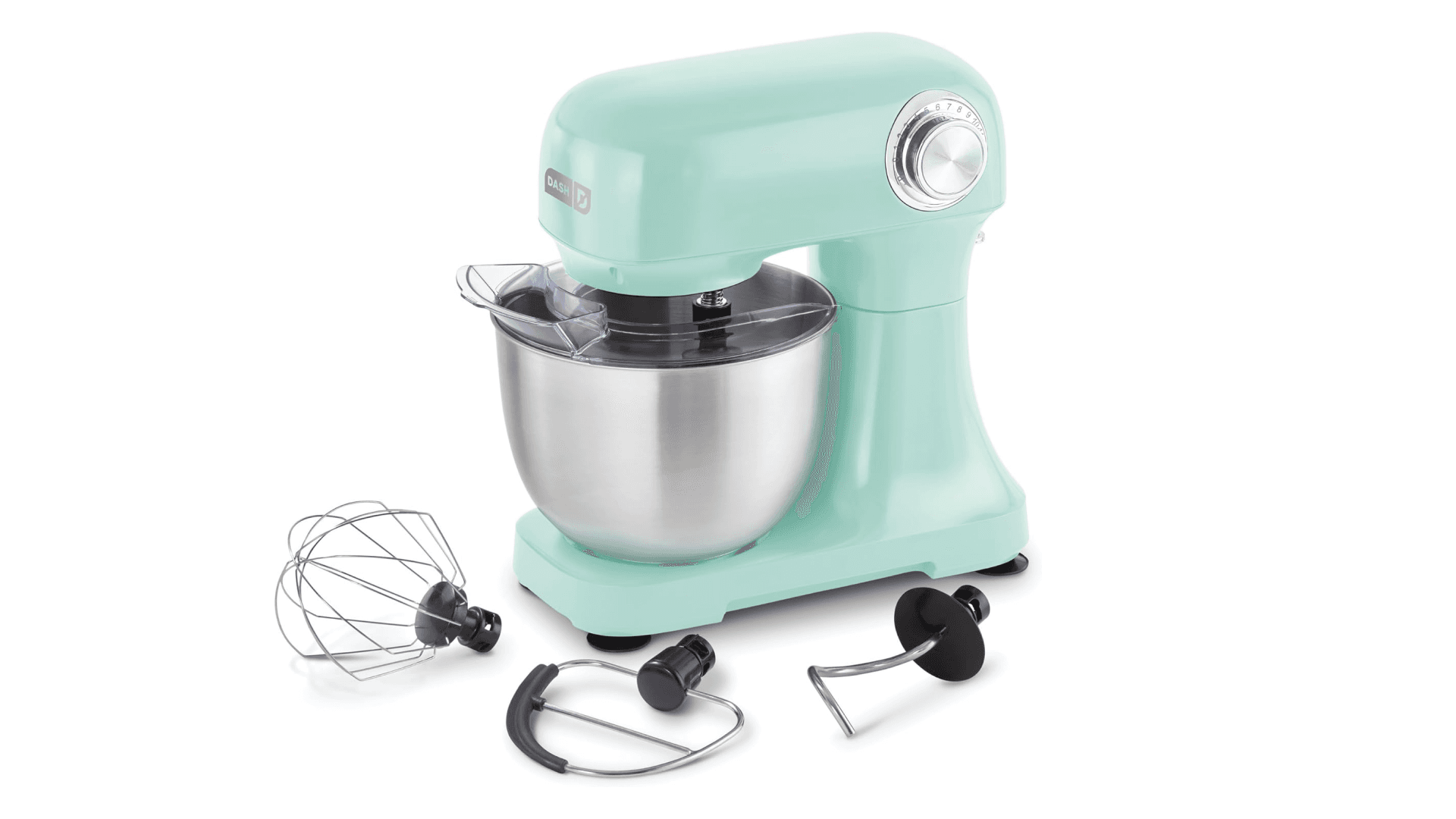 Dash is popular for its mini waffle makers, but I had no idea they made stand mixers. I’m also looking to add one to our registry that isn’t heavy and works in our small space. This one has a 3.5-quart capacity, three basic attachments, and a splash guard. All the attachments and the stainless steel bowl are dishwasher-safe, which is an added perk. ($79.99, Amazon)