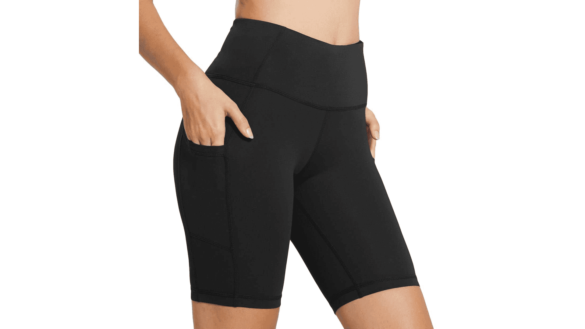 They’re a bestseller for a reason. We love these super-stretchy shorts because they provide complete coverage thanks to the high-rise, wide waistband. The longer length means that they won’t roll up and can handle a wide range of motion. And thankfully, we don’t experience chafing thanks to their smooth ergonomic seams. All you have to do is pick your favorite color. ($19.99, Amazon)