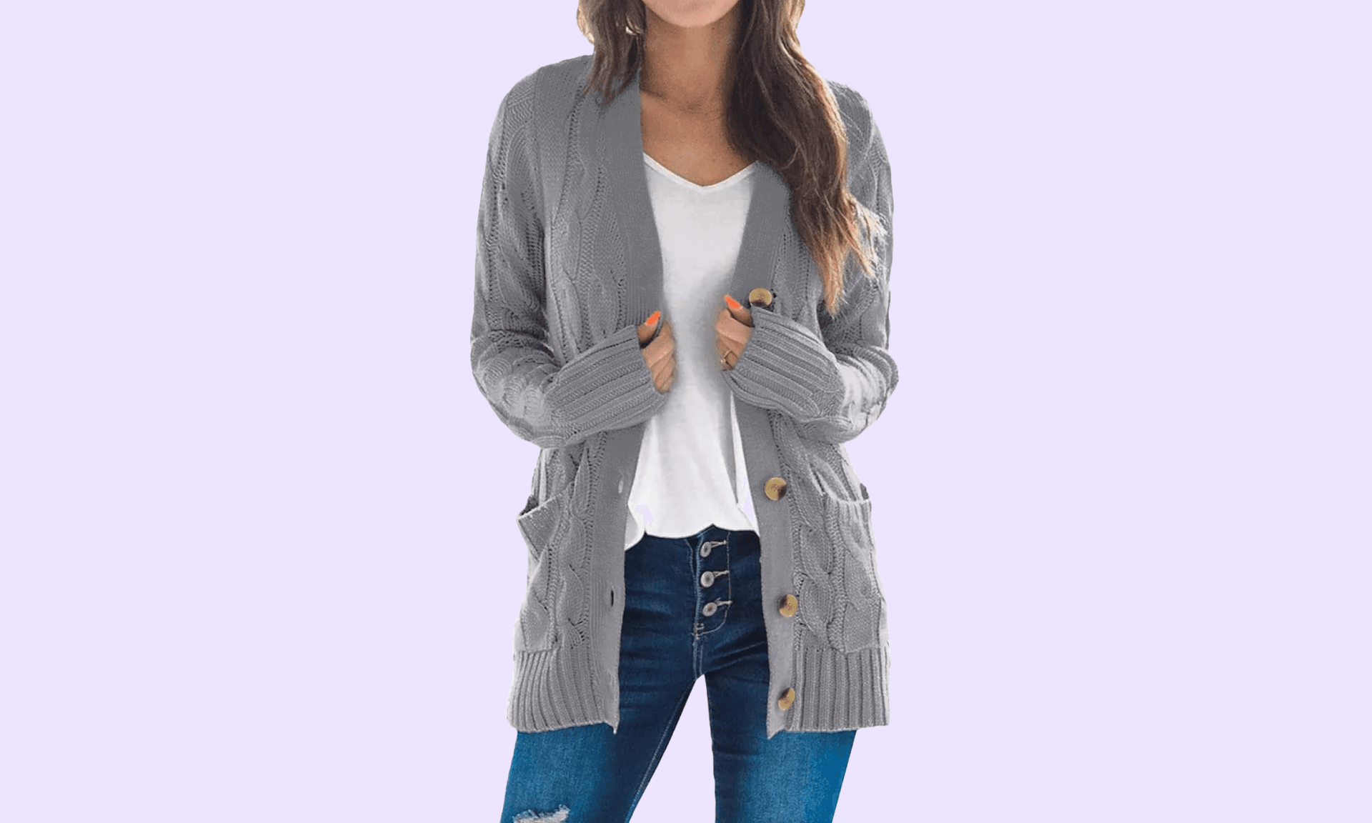 A cozy cable knit with pockets and large buttons? What more could we ask for in a cardigan? This one sizes up to a 4XL and comes in eight fall-friendly colors. Skimm’rs can’t get enough of this one and we understand why. It’s soft, pairs well with leggings, and isn’t overpriced like so many other cardigans on the market. ($34.99, Walmart)