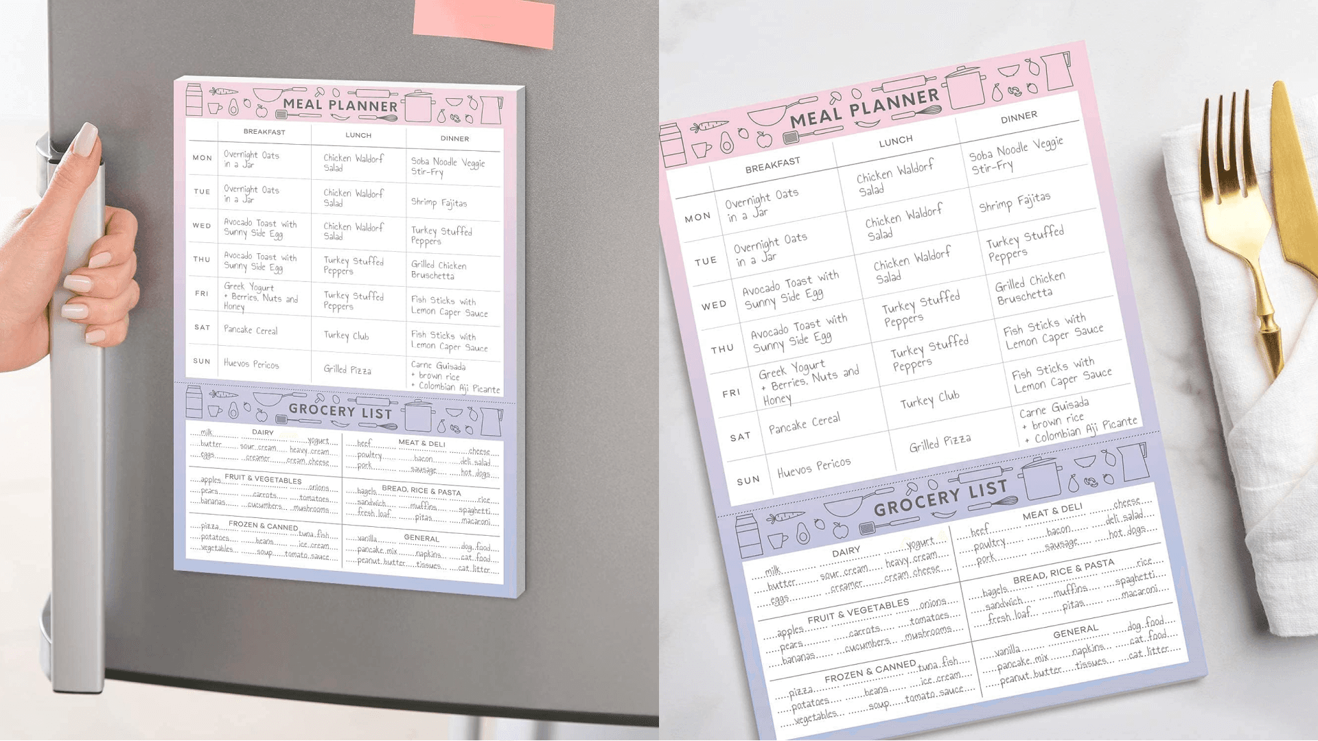 This one has been a bestseller for Skimm’rs, and I particularly love it because you don’t have to think about how to lay anything out. It’s all done for you. You can plan ahead and prep meals for each day of the week. I also find that a prompted pad like this can guide me in a way that ends up minimizing food waste. Plus, this one has strong magnets so it’ll actually stay put on your fridge ($7.99, Amazon)