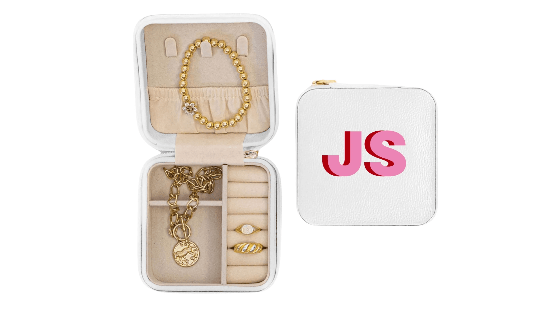 No more throwing bracelets in the bottom of their bag. This monogrammable travel jewelry case includes compartments for up to five rings and necklaces, and is lightweight enough to bring anywhere. Note — if you happen to have a wedding coming up, these would make great bridal party gifts. And if you wanna get into details, there's multiple styles, fonts, and colors to choose from. Psst…use code SKIMM at checkout for 10% off. ($19.99, Sprinkled With Pink)