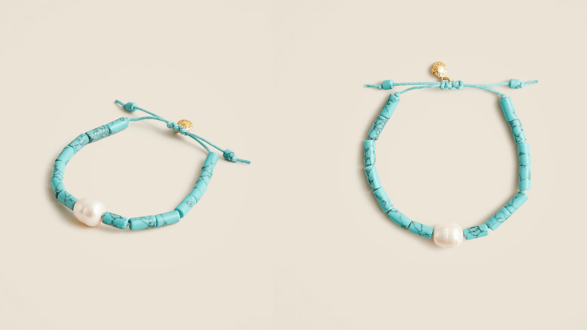 Pearls are having a moment this summer, and I love that this turquoise-accented bracelet (also from J.Crew) feels modern. At one point, there was a matching necklace, but it’s so popular it sold out. I’m opting for this style instead to pair with a classic gold bangle. ($59.50, J.Crew)