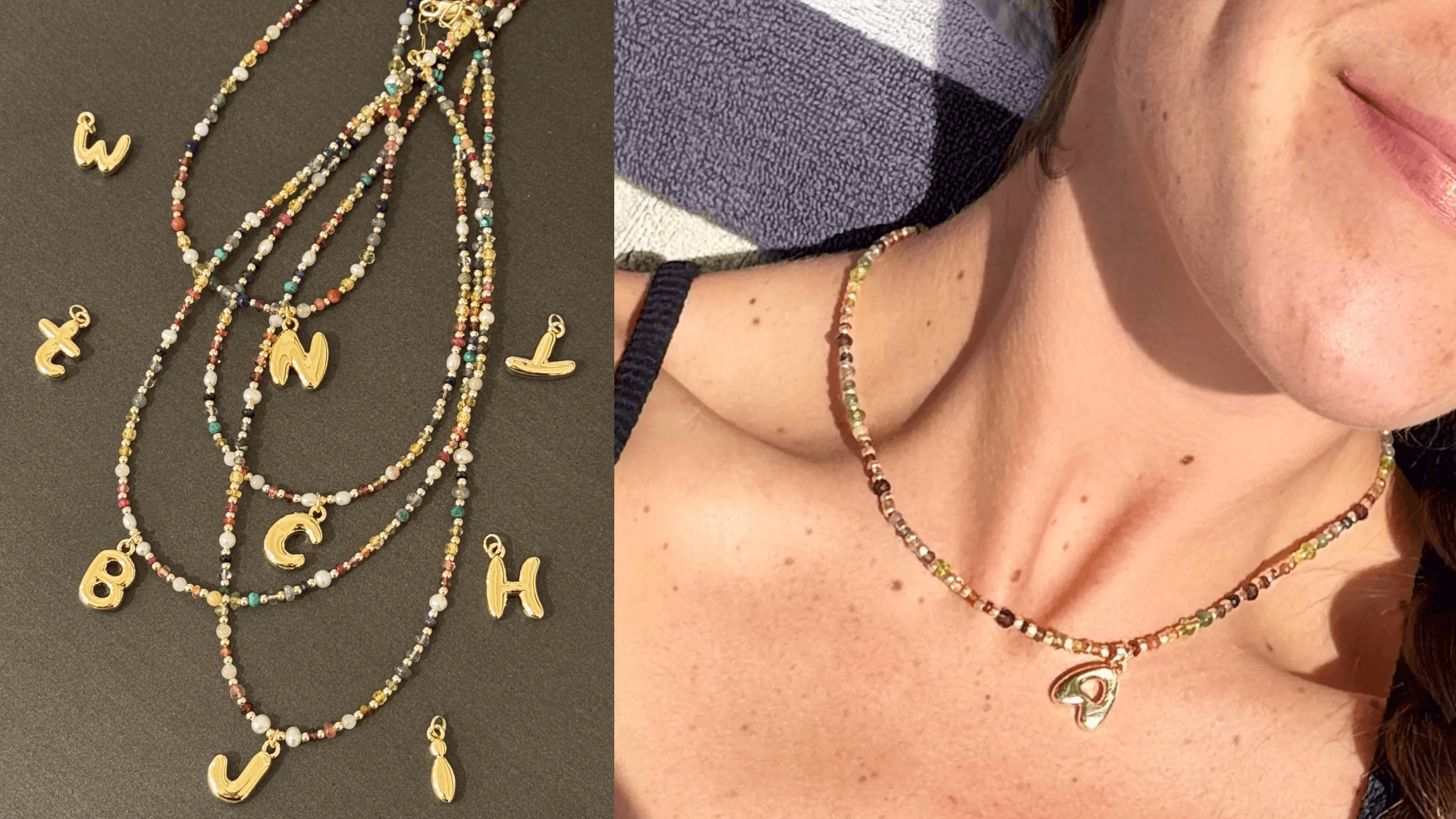 These bubble initial necklaces are all the rage this summer, and I wrote about this one in our Skimm Shopping newsletter. Its beads are dainty, but the initial charm is still noticeable. The charm itself is made of 18-karat filled gold with multicolored gemstone beads. The best part: It comes from a small, woman-owned business. ($85, Active Artistry via Etsy)