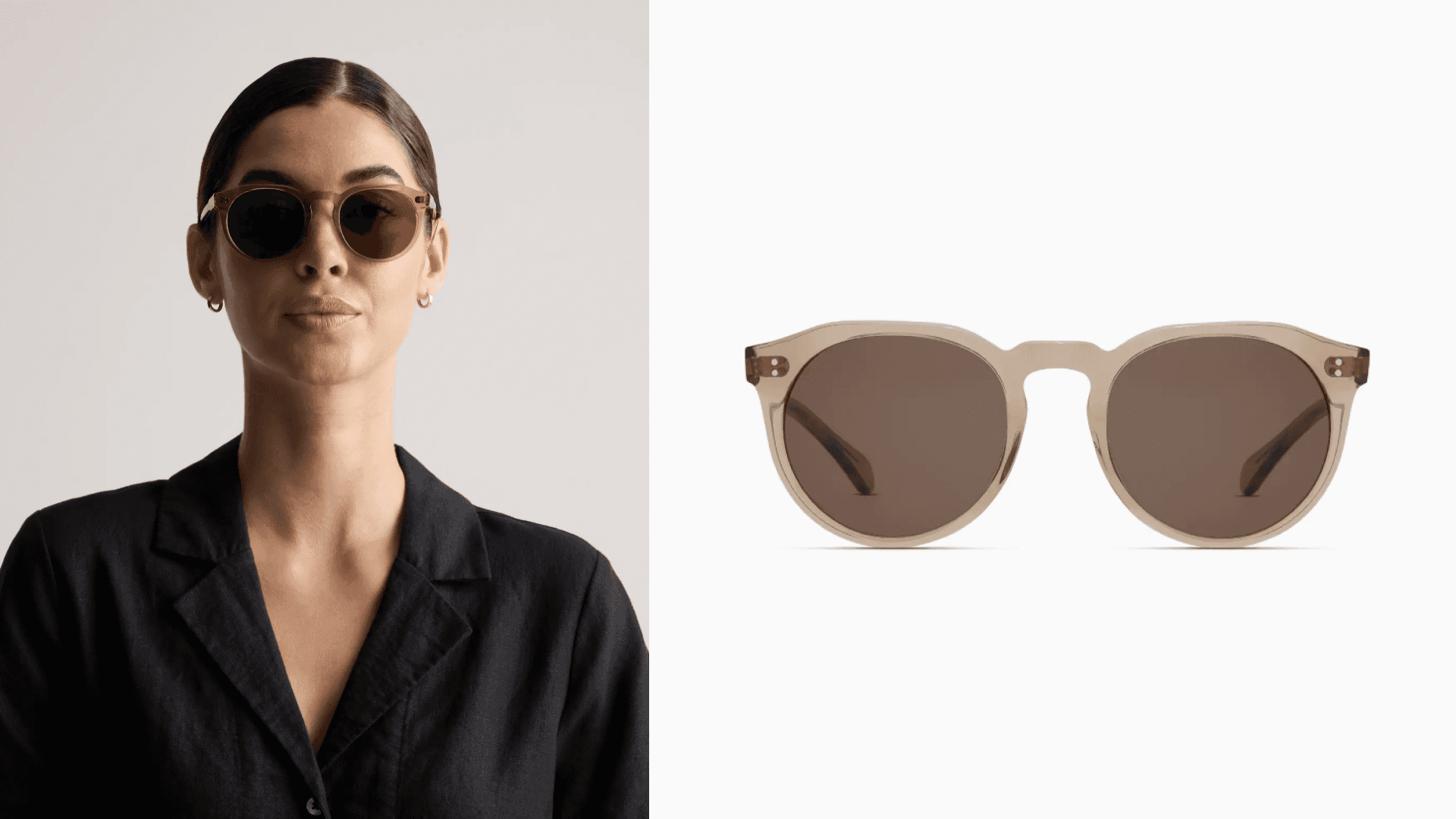 I was overjoyed when I found out that Quince, one of my favorite retailers, was launching sunglasses. This pair is round with angled edges and the taupe color feels unique and elevated. These are majorly on my wish list. ($50, Quince)