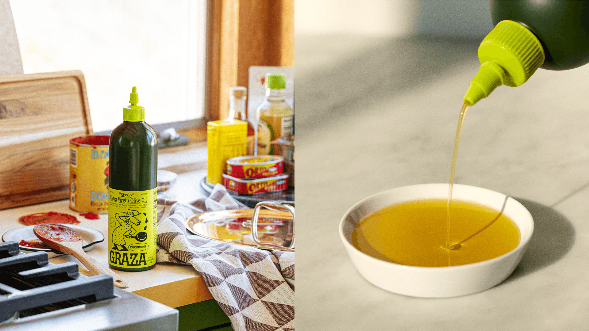 Olive oil in a satisfying squeeze bottle…